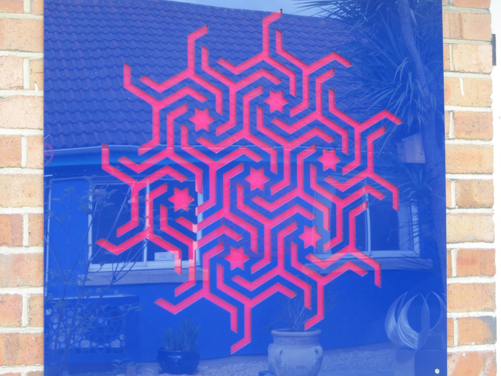 Due to their sculptural form Moorhouse’s sculptures create a never ending pattern, embedding the infinite, even more so than in 2 dimensions. There is no beginning and no end. As the surface becomes form, a new abstract shape emerges, a new manifestation of a spiritual inner truth. Spatial relationships between the resulting form and the original motif pattern creating a resonance. The geometric forms become a dance, balancing up proportion and symmetry, with visual representation in geometric pattern and an intuitional sense of aesthetic beauty, conveying a sense of the mystery of creation.