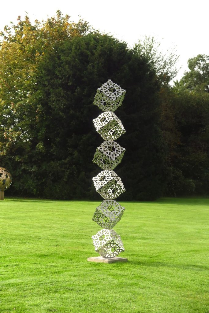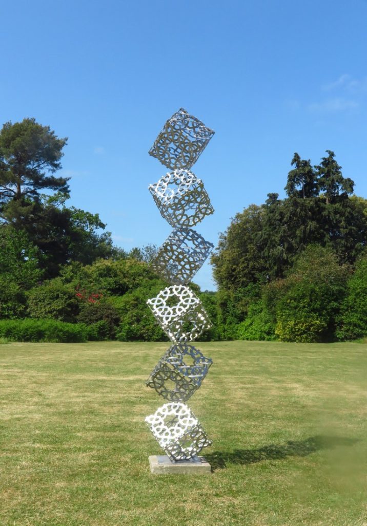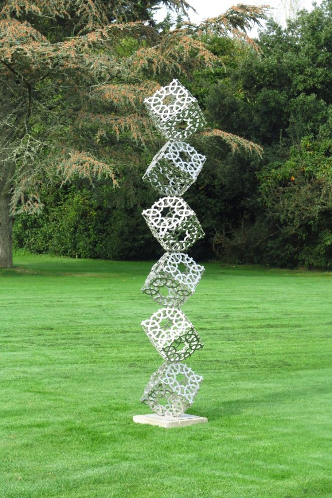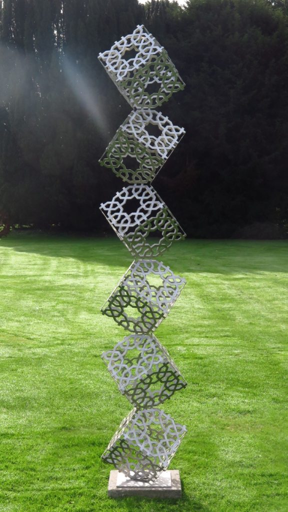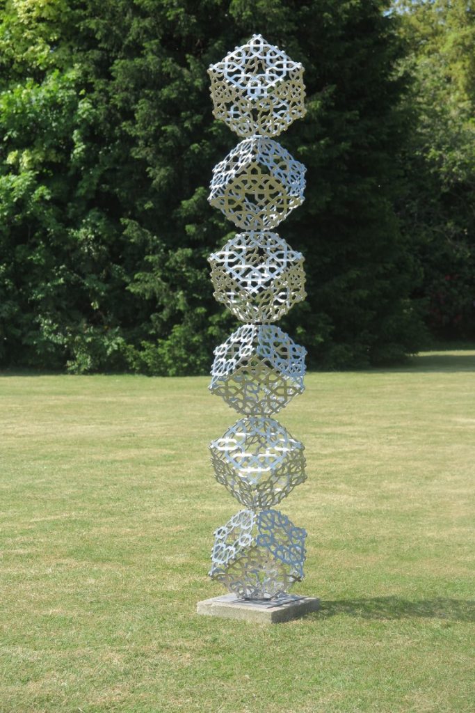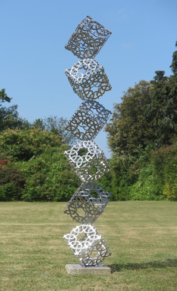 This sculpture reinterprets traditional Islamic geometric design in contemporary sculptural form. The geometric patterns in Islamic art were generally two dimensional (tiles, mosaics, engraving etc) or architectural. This work explores how these designs could be represented three dimensionally as a sculpture.
